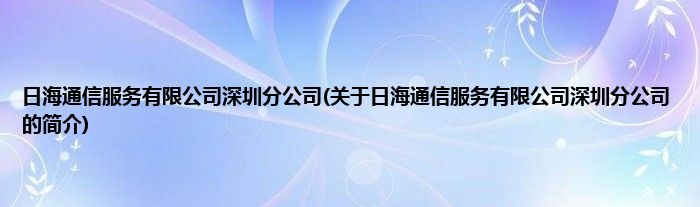大家好,日海通信服务有限公司深圳分公司,关于日海通信服务有限公司深圳分公司的简介很多人还不知道,现在让我们一起来看看吧!