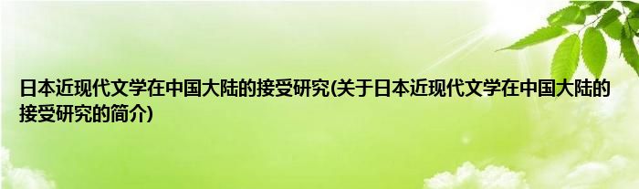 本文关于日本近现代文学在中国大陆的接受研究的简介就讲解完毕,希望对大家有所帮助。