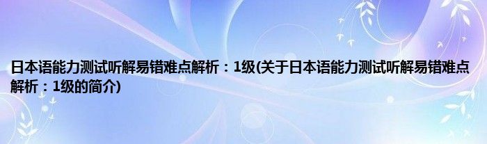 本文关于日本语能力测试听解易错难点解析:1级的简介就讲解完毕,希望对大家有所帮助。