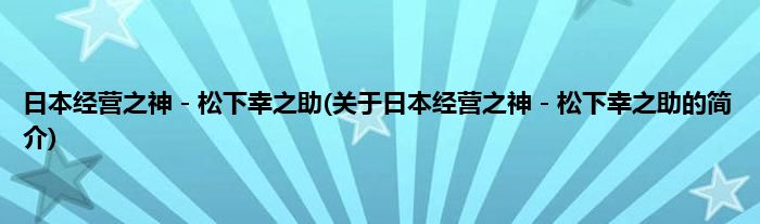 本文关于日本经营之神-松下幸之助的简介就讲解完毕,希望对大家有所帮助。