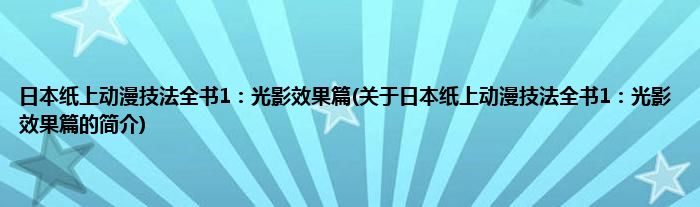 本文关于日本纸上动漫技法全书1:光影效果篇的简介就讲解完毕,希望对大家有所帮助。