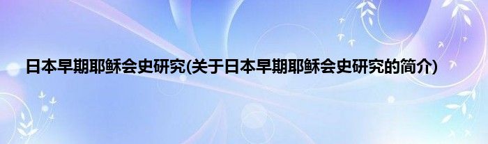 大家好,日本早期耶稣会史研究,关于日本早期耶稣会史研究的简介很多人还不知道,现在让我们一起来看看吧!
