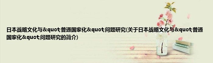 本文关于日本战略文化与"普通国家化"问题研究的简介就讲解完毕,希望对大家有所帮助。
