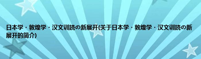 日本学・敦煌学・汉文训読の新展开(关于日本学・敦煌学・汉文训読の新展开的简介)