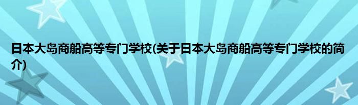 日本大岛商船高等专门学校(关于日本大岛商船高等专门学校的简介)