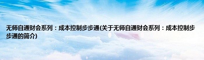 本文关于无师自通财会系列:成本控制步步通的简介就讲解完毕,希望对大家有所帮助。
