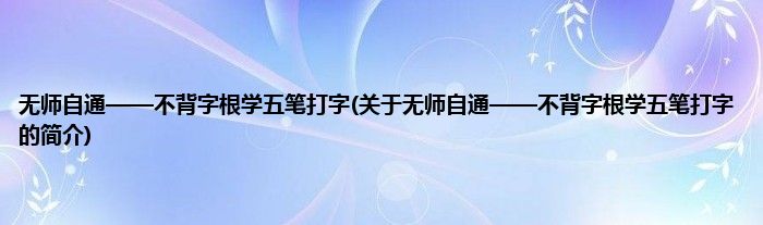本文关于无师自通——不背字根学五笔打字的简介就讲解完毕,希望对大家有所帮助。