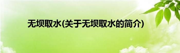 大家好,无坝取水,关于无坝取水的简介很多人还不知道,现在让我们一起来看看吧!
