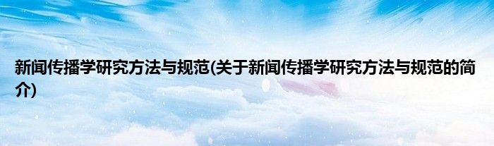 大家好,新闻传播学研究方法与规范,关于新闻传播学研究方法与规范的简介很多人还不知道,现在让我们一起来看看吧!