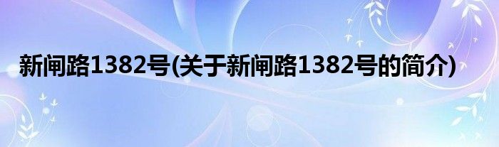 本文关于新闸路1382号的简介就讲解完毕,希望对大家有所帮助。