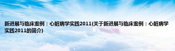 大家好,新进展与临床案例:心脏病学实践2011,关于新进展与临床案例:心脏病学实践2011的简介很多人还不知道,现在让我们一起来看看吧!