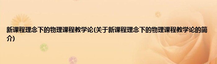 大家好,新课程理念下的物理课程教学论,关于新课程理念下的物理课程教学论的简介很多人还不知道,现在让我们一起来看看吧!