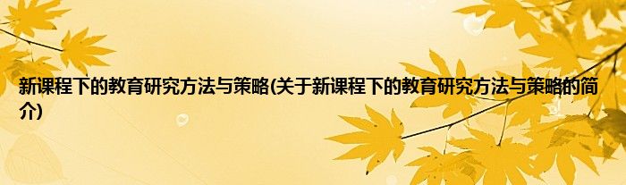 本文关于新课程下的教育研究方法与策略的简介就讲解完毕,希望对大家有所帮助。
