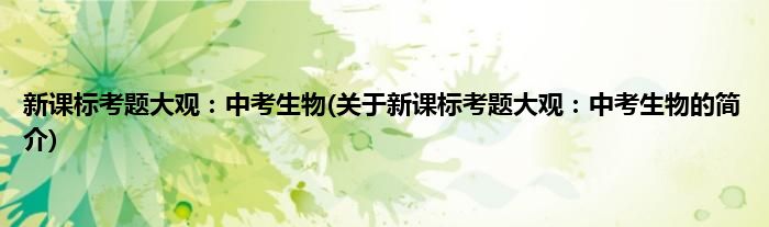 大家好,新课标考题大观:中考生物,关于新课标考题大观:中考生物的简介很多人还不知道,现在让我们一起来看看吧!