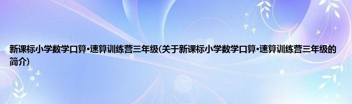 本文关于新课标小学数学口算·速算训练营三年级的简介就讲解完毕,希望对大家有所帮助。