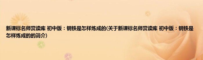 本文关于新课标名师赏读库 初中版:钢铁是怎样炼成的的简介就讲解完毕,希望对大家有所帮助。