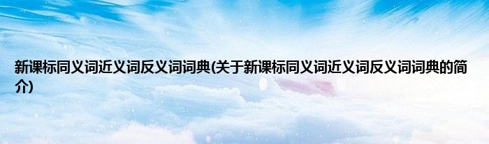 新课标同义词近义词反义词词典(关于新课标同义词近义词反义词词典的简介)