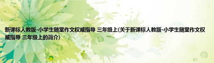大家好,新课标人教版-小学生随堂作文权威指导 三年级上,关于新课标人教版-小学生随堂作文权威指导 三年级上的简介很多人还不知道,现在让我们一起来看看吧!