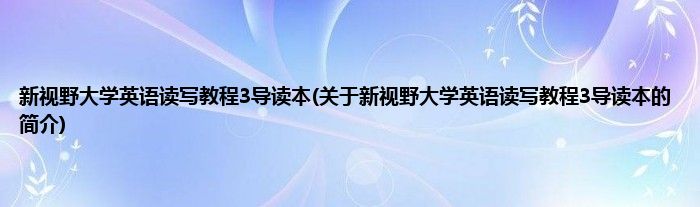 大家好,新视野大学英语读写教程3导读本,关于新视野大学英语读写教程3导读本的简介很多人还不知道,现在让我们一起来看看吧!