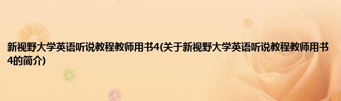 大家好,新视野大学英语听说教程教师用书4,关于新视野大学英语听说教程教师用书4的简介很多人还不知道,现在让我们一起来看看吧!