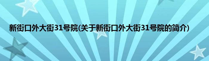 本文关于新街口外大街31号院的简介就讲解完毕,希望对大家有所帮助。