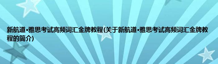 本文关于新航道·雅思考试高频词汇金牌教程的简介就讲解完毕,希望对大家有所帮助。
