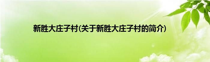 本文关于新胜大庄子村的简介就讲解完毕,希望对大家有所帮助。