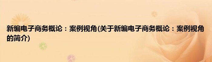本文关于新编电子商务概论:案例视角的简介就讲解完毕,希望对大家有所帮助。