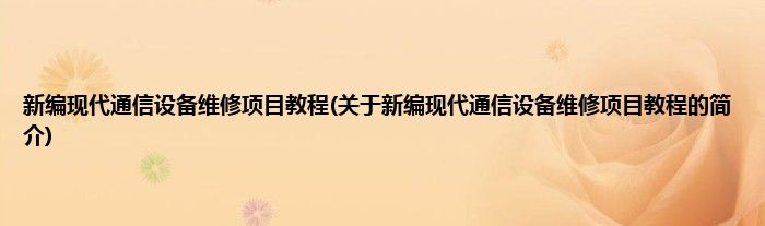新编现代通信设备维修项目教程(关于新编现代通信设备维修项目教程的简介)