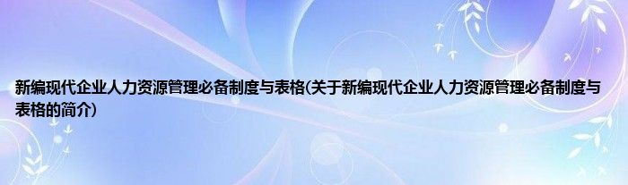 本文关于新编现代企业人力资源管理必备制度与表格的简介就讲解完毕,希望对大家有所帮助。