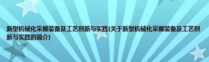 大家好,新型机械化采掘装备及工艺创新与实践,关于新型机械化采掘装备及工艺创新与实践的简介很多人还不知道,现在让我们一起来看看吧!