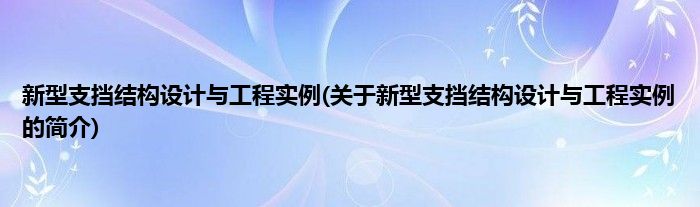 大家好,新型支挡结构设计与工程实例,关于新型支挡结构设计与工程实例的简介很多人还不知道,现在让我们一起来看看吧!