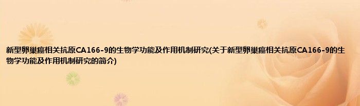 本文关于新型卵巢癌相关抗原CA166-9的生物学功能及作用机制研究的简介就讲解完毕,希望对大家有所帮助。