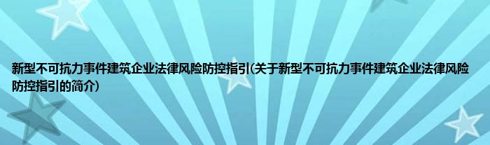 本文关于新型不可抗力事件建筑企业法律风险防控指引的简介就讲解完毕,希望对大家有所帮助。
