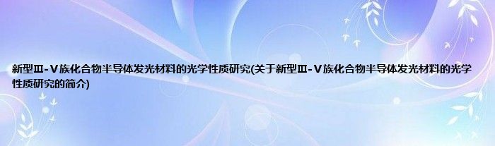 大家好,新型Ⅲ-Ⅴ族化合物半导体发光材料的光学性质研究,关于新型Ⅲ-Ⅴ族化合物半导体发光材料的光学性质研究的简介很多人还不知道,现在让我们一起来看看吧!
