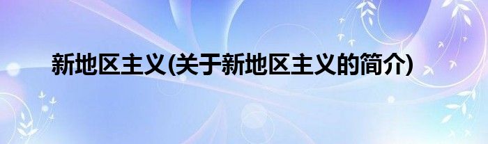 大家好,新地区主义,关于新地区主义的简介很多人还不知道,现在让我们一起来看看吧!