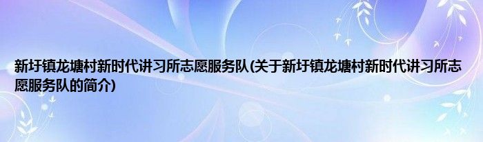 本文关于新圩镇龙塘村新时代讲习所志愿服务队的简介就讲解完毕,希望对大家有所帮助。