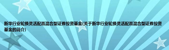 大家好,新华行业轮换灵活配置混合型证券投资基金,关于新华行业轮换灵活配置混合型证券投资基金的简介很多人还不知道,现在让我们一起来看看吧!