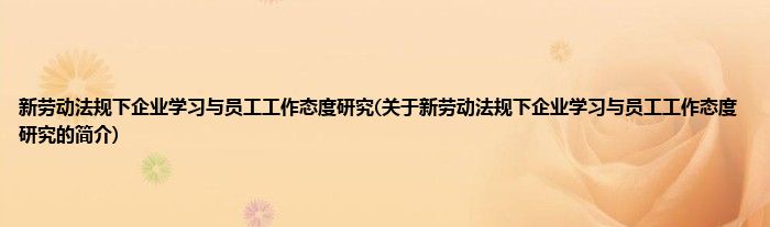 新劳动法规下企业学习与员工工作态度研究(关于新劳动法规下企业学习与员工工作态度研究的简介)