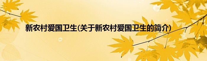本文关于新农村爱国卫生的简介就讲解完毕,希望对大家有所帮助。