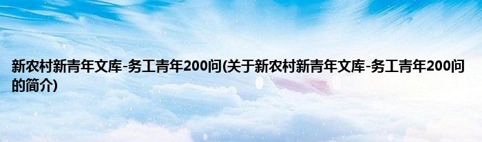 本文关于新农村新青年文库-务工青年200问的简介就讲解完毕,希望对大家有所帮助。