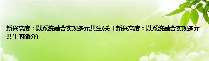 大家好,新兴高度:以系统融合实现多元共生,关于新兴高度:以系统融合实现多元共生的简介很多人还不知道,现在让我们一起来看看吧!