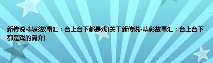 大家好,新传说·精彩故事汇:台上台下都是戏,关于新传说·精彩故事汇:台上台下都是戏的简介很多人还不知道,现在让我们一起来看看吧!