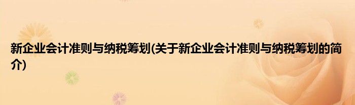 本文关于新企业会计准则与纳税筹划的简介就讲解完毕,希望对大家有所帮助。