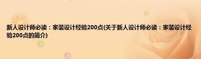 新人设计师必读:家装设计经验200点(关于新人设计师必读:家装设计经验200点的简介)