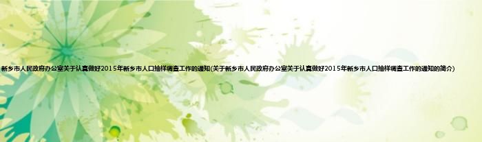 本文关于新乡市人民政府办公室关于认真做好2015年新乡市人口抽样调查工作的通知的简介就讲解完毕,希望对大家有所帮助。