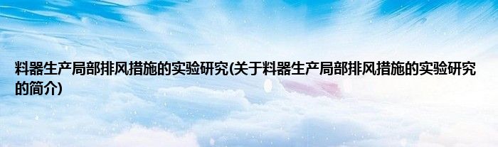 料器生产局部排风措施的实验研究(关于料器生产局部排风措施的实验研究的简介)