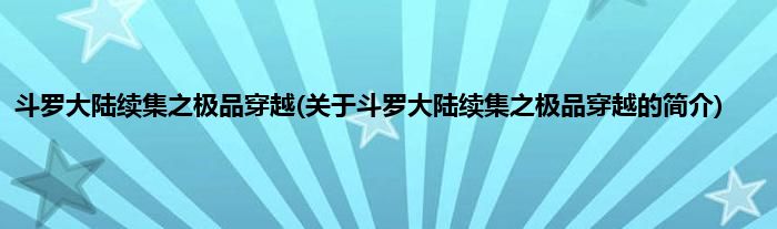 本文关于斗罗大陆续集之极品穿越的简介就讲解完毕,希望对大家有所帮助。