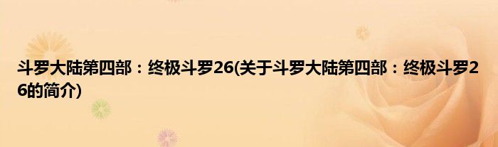 斗罗大陆第四部:终极斗罗26(关于斗罗大陆第四部:终极斗罗26的简介)