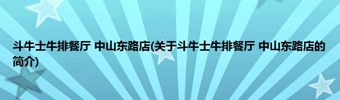 斗牛士牛排餐厅 中山东路店(关于斗牛士牛排餐厅 中山东路店的简介)